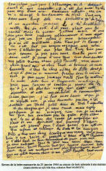 Bientôt, un de nos camarades de chambrée qui travaille à l'expédition des colis renvoyés aux familles, m'avise que, depuis quelques jours, ces colis ne sont plus ouverts. Rien n'est plus inquiétant, mais en même temps, il faut en profiter pour faire passer des renseignements qui ne risquent pas d'être interceptés. Nous sommes le 25 janvier et je rédige immédiatement une lettre pour maman.